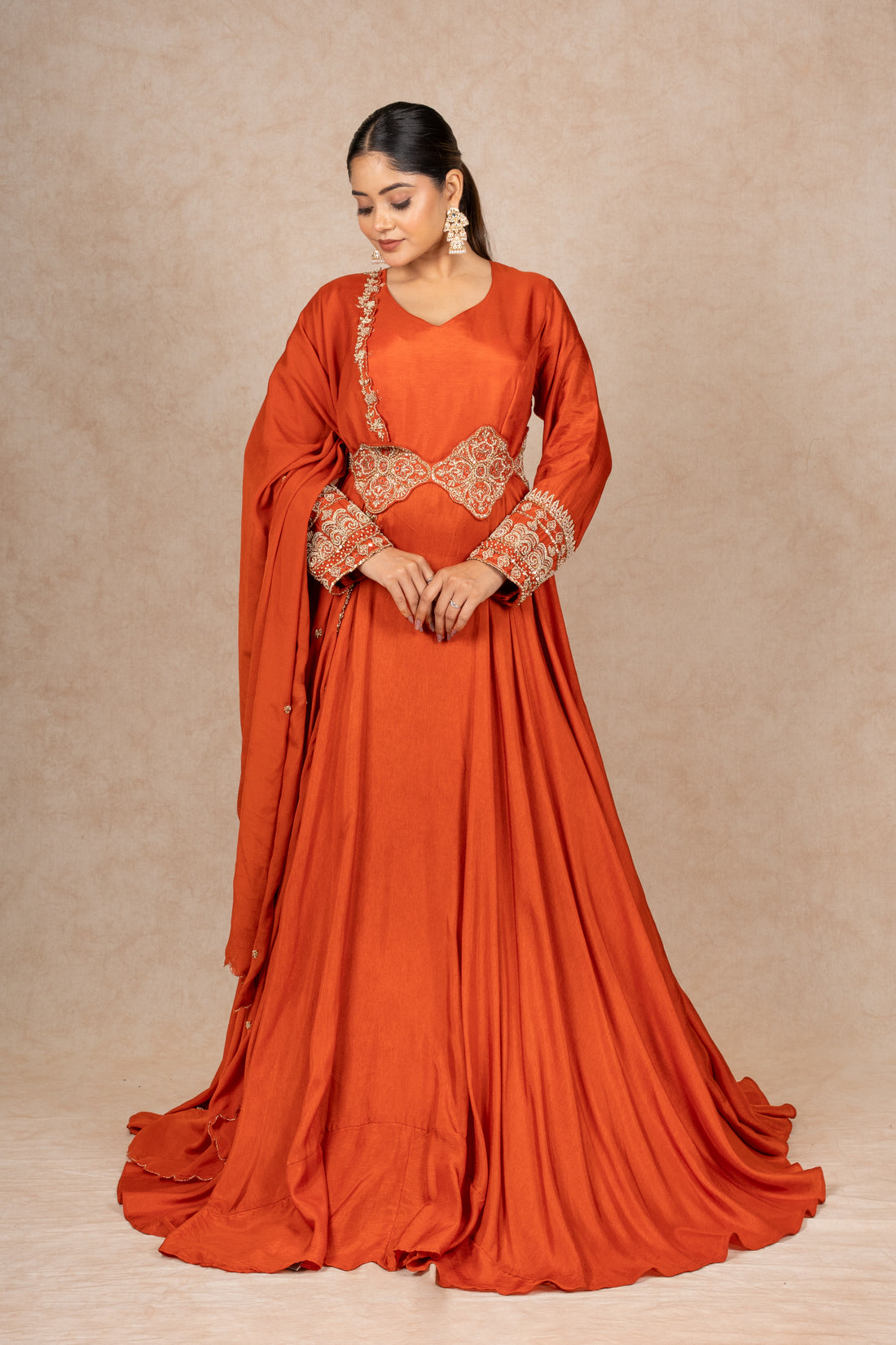 RUST ORANGE SUIT WITH PANTS & DUPATTA