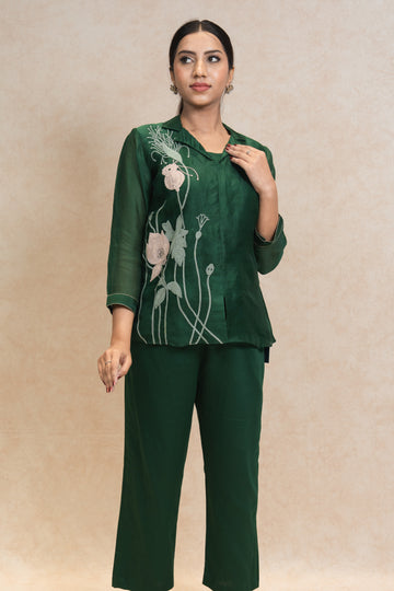 EMERALD GREEN INDOWESTERN WITH DRAPE SKIRT