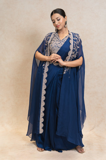 ELEGANT BLUE DRAPE SAREE WITH CORSET BLOUSE