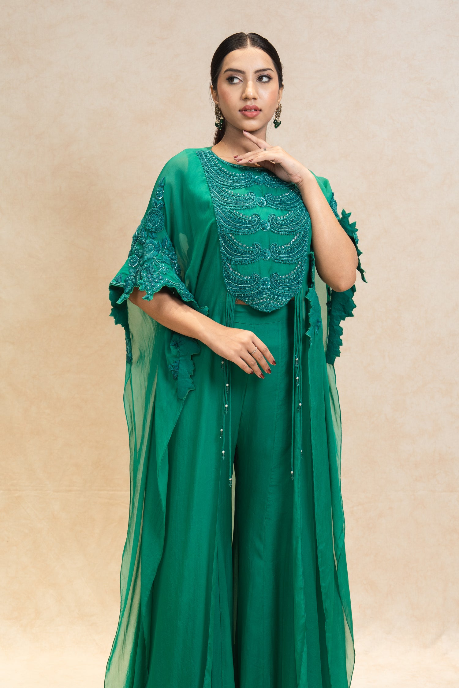 Lime Green Chinnon Cape Style Indo-Western Set - Elegant Festive Wear