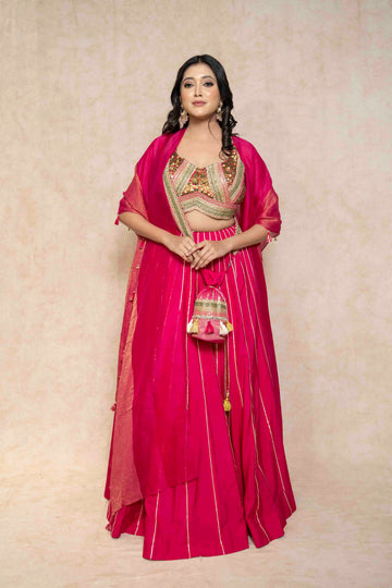 Rani Organza Indowestern with Bustier and Dhoti Pants - Elegant Festive Wear
