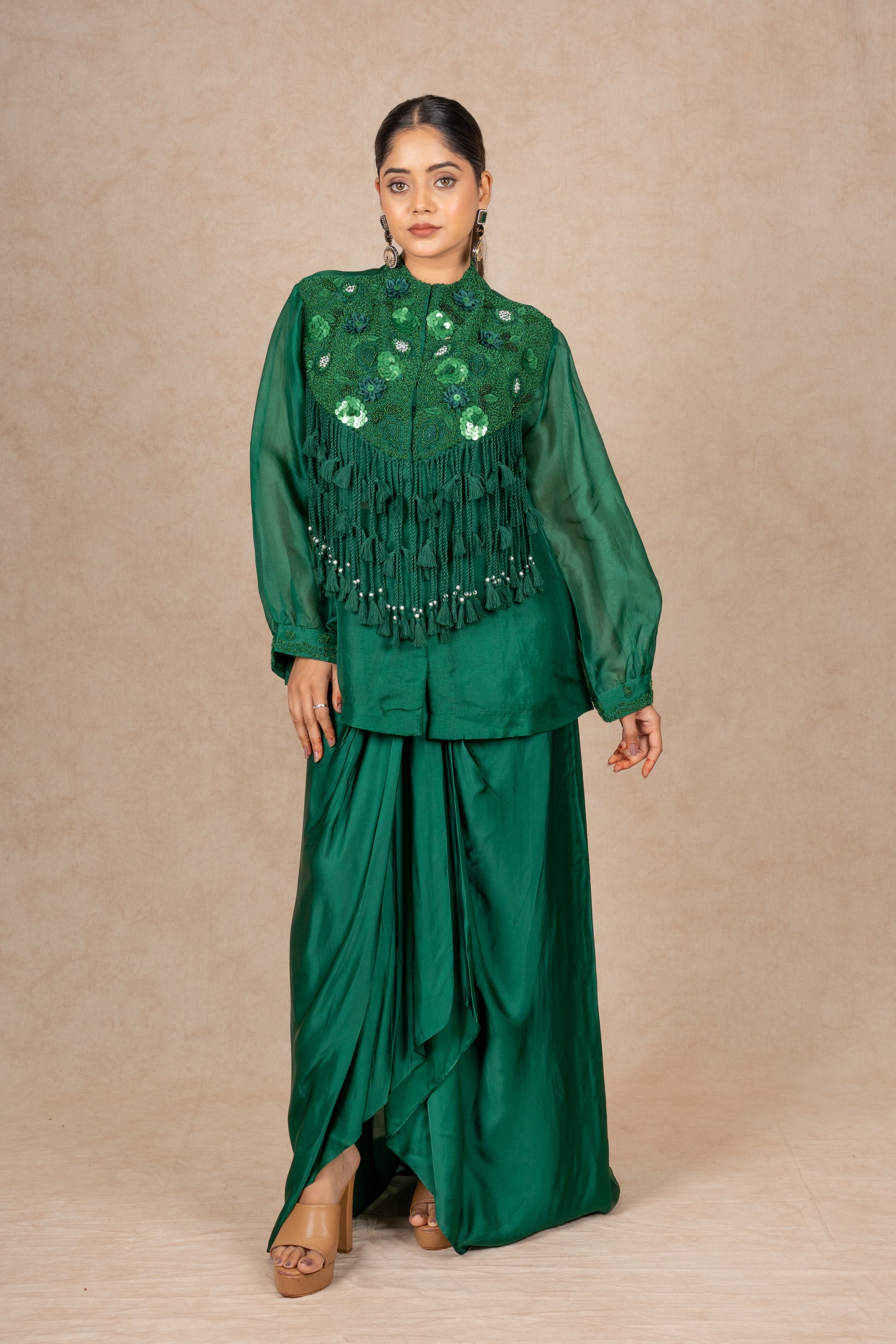 EMERALD GREEN INDOWESTERN WITH DRAPE SKIRT