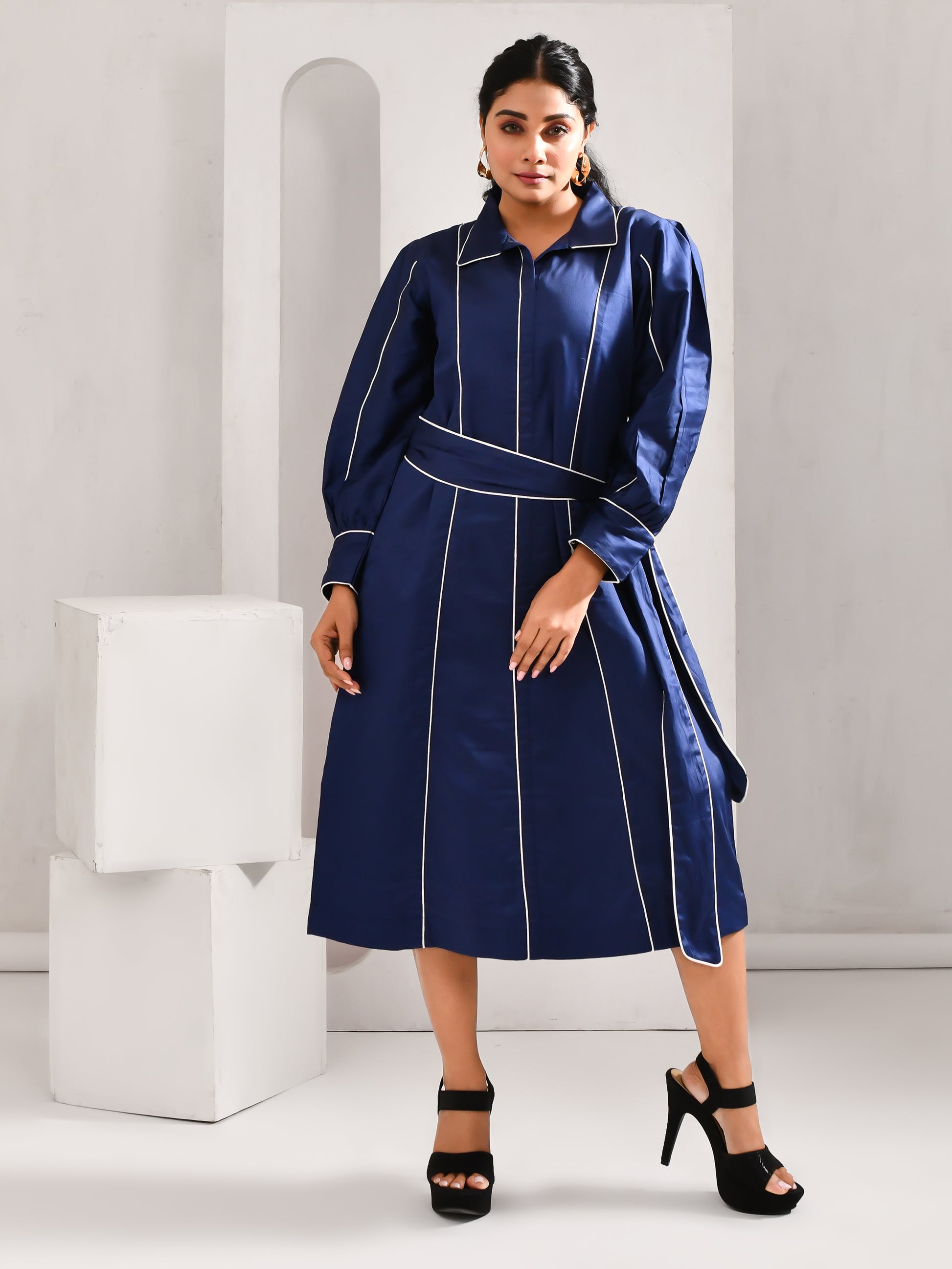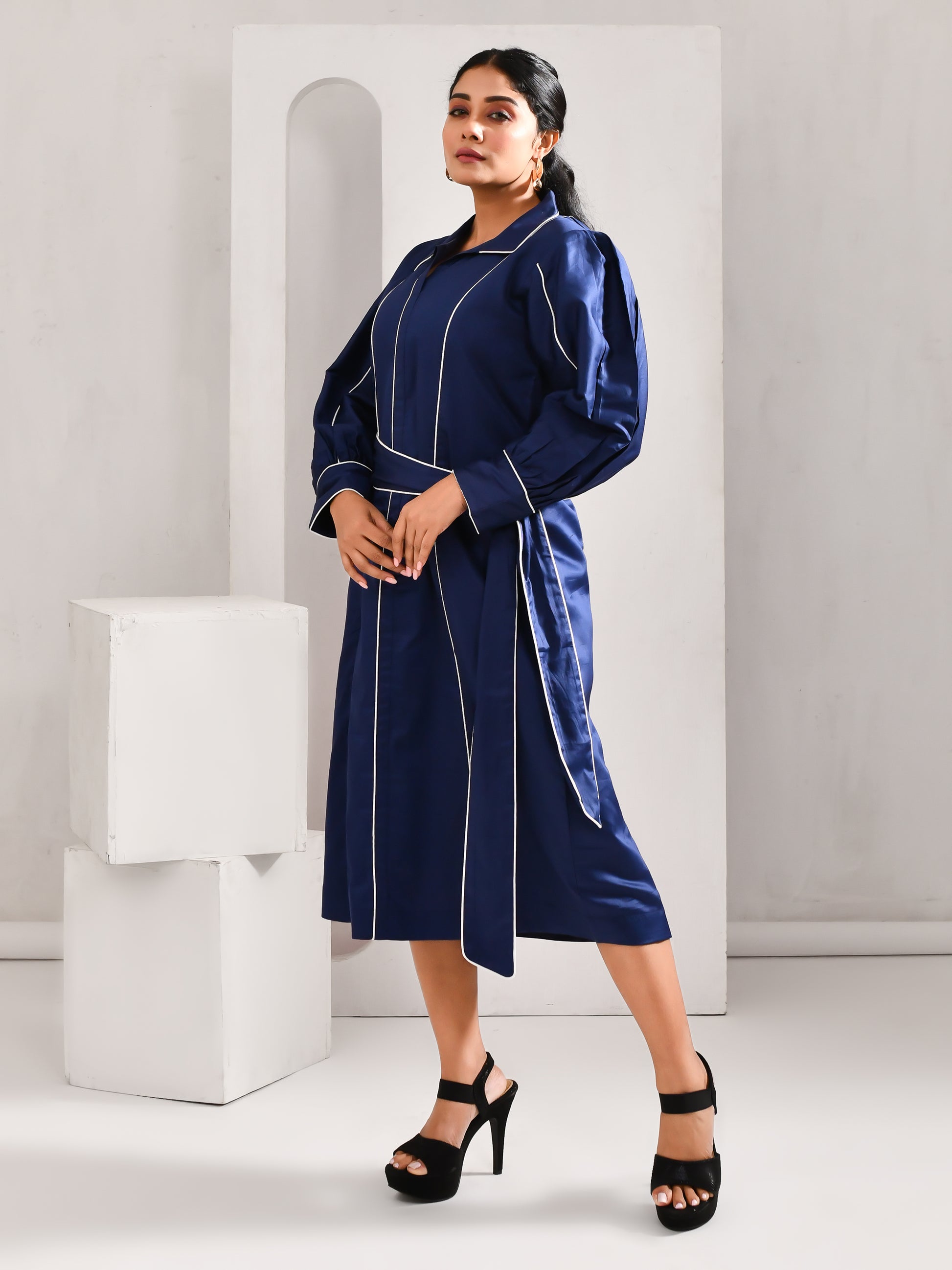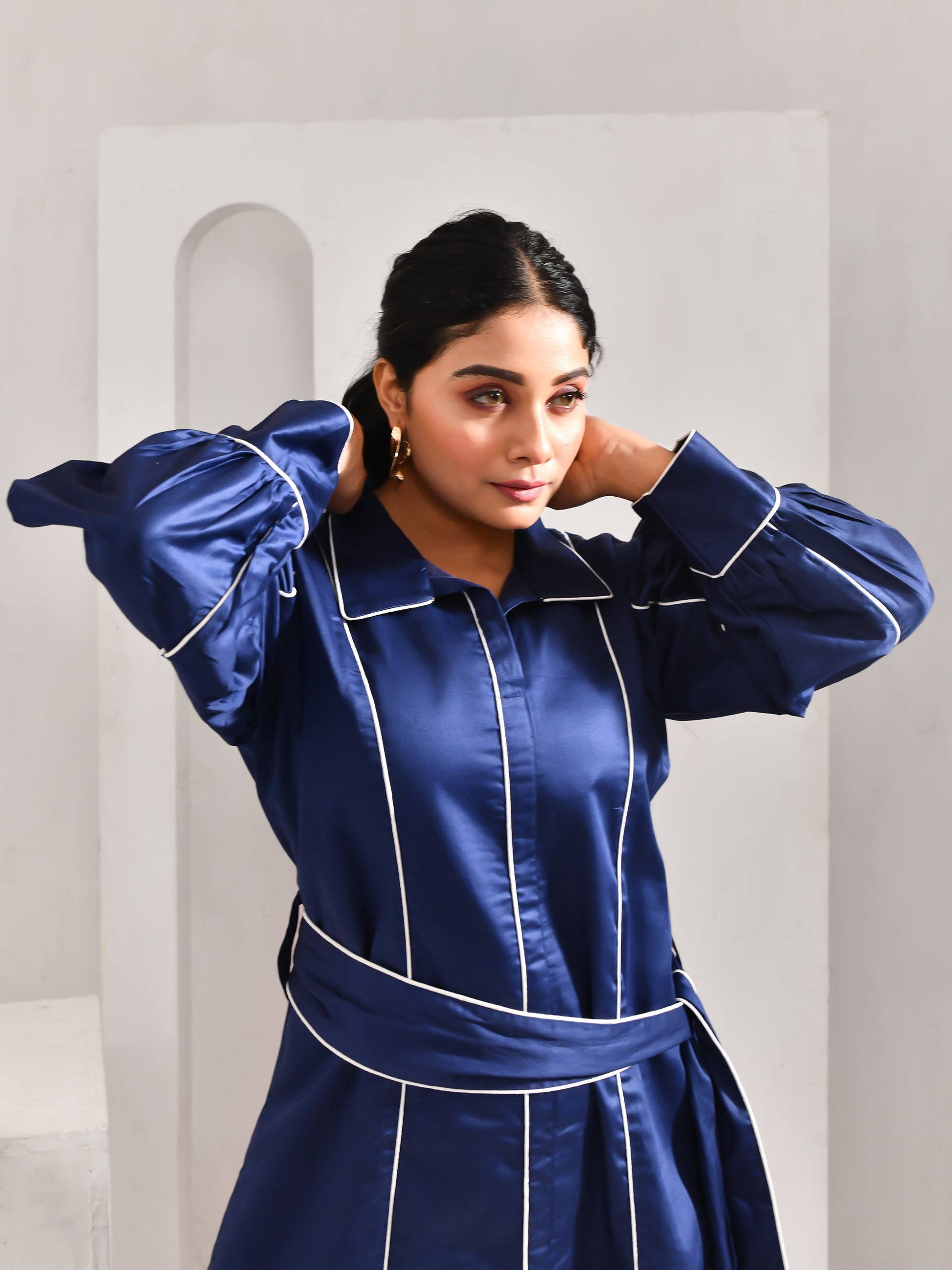Blue and white come together in a combination that never goes out of style, carrying a sense of ease and confidence. Defined with panelled detailing and subtle piping, it brings a clean, structured finish to the look. Timeless, polished and made to stand out without trying too hard.