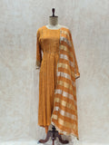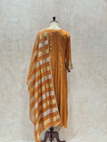 -Bold horizontal stripes in alternating mustard-orange and golden tones on dupatta.