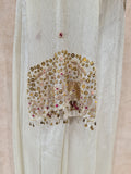-Heavy floral embroidery with sequins and beadwork at sleeve ends.