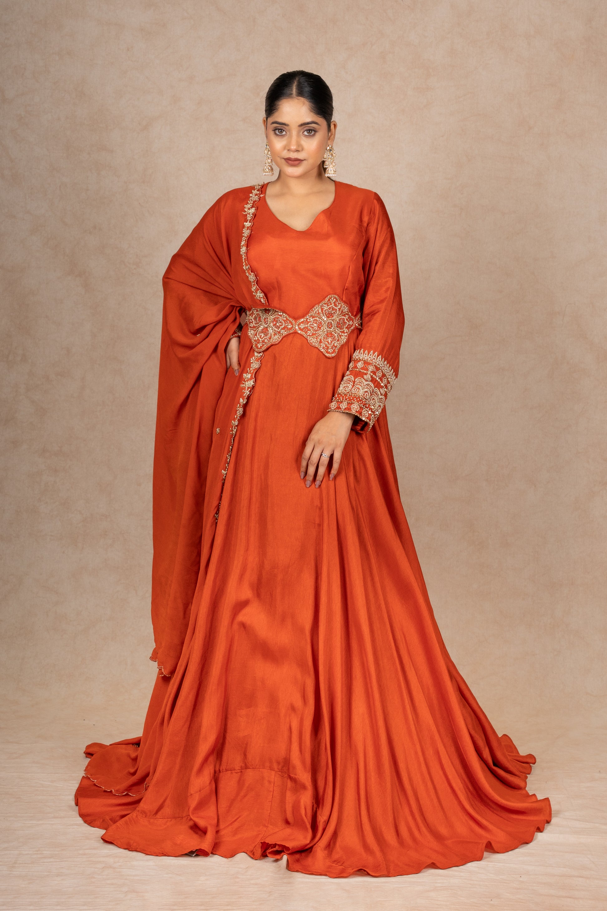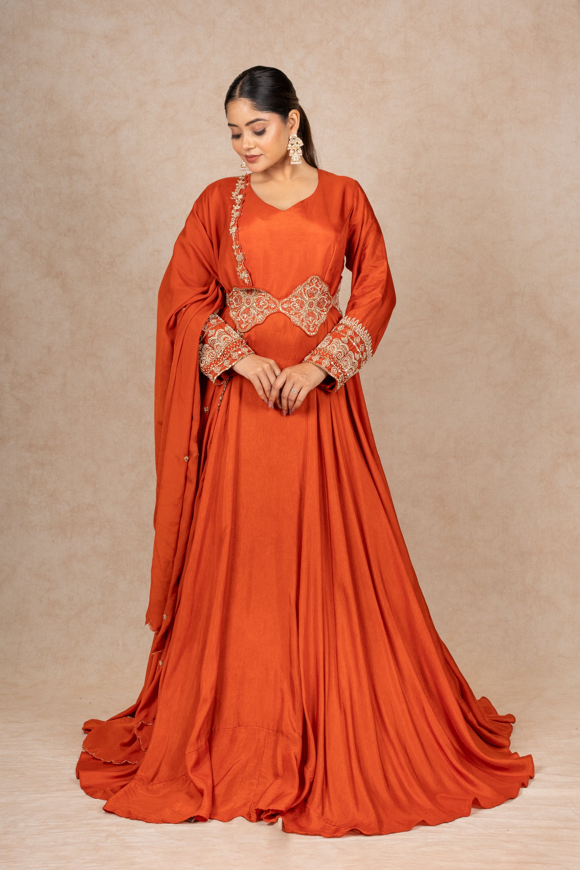 RUST ORANGE GOWN WITH DUPATTA