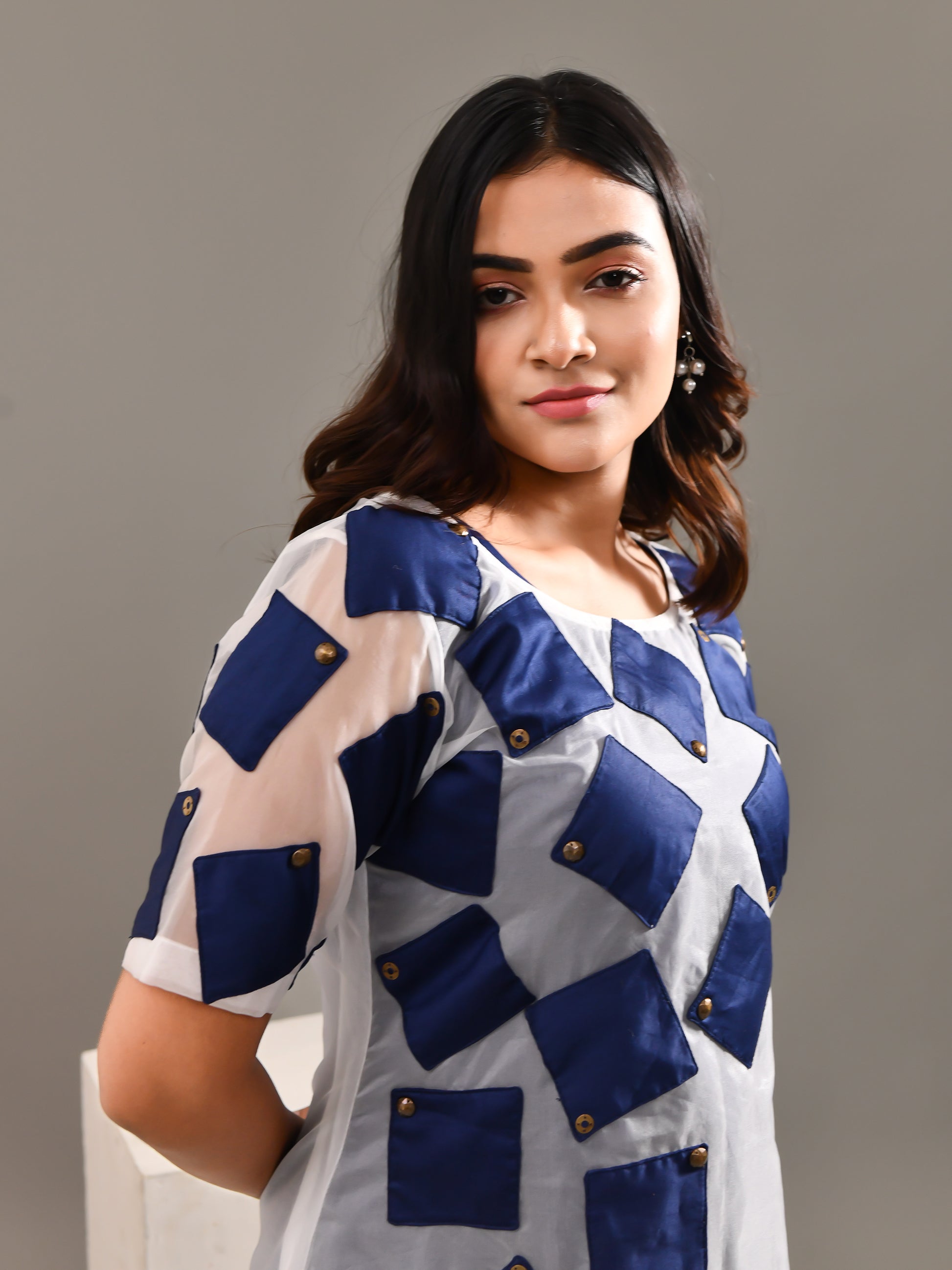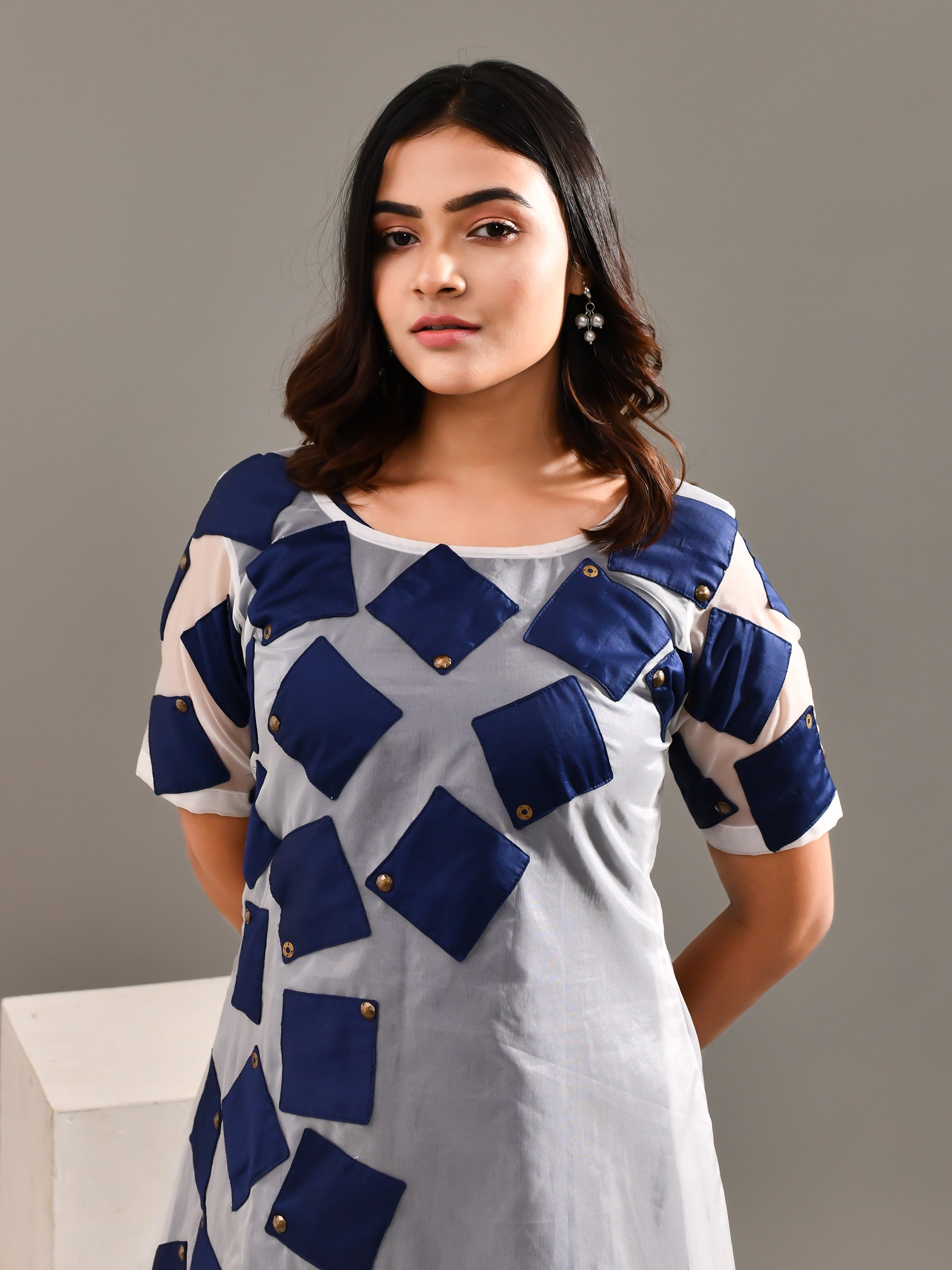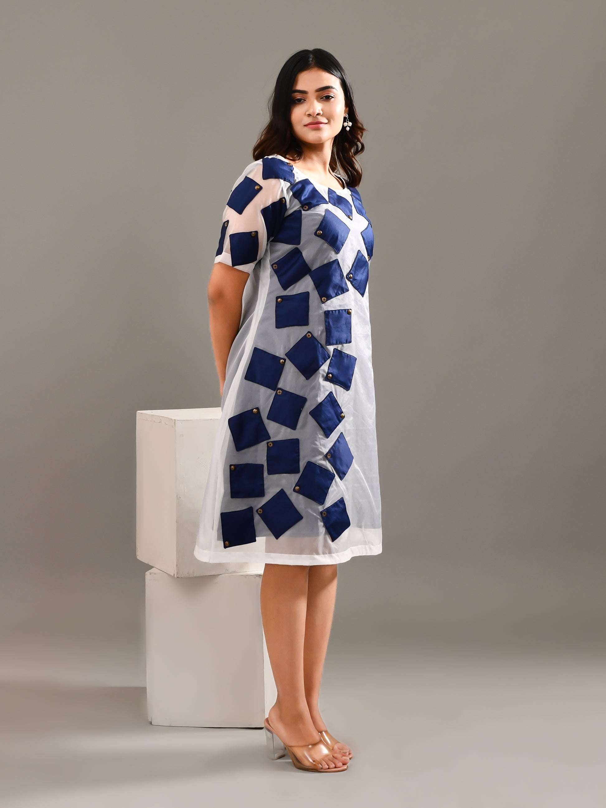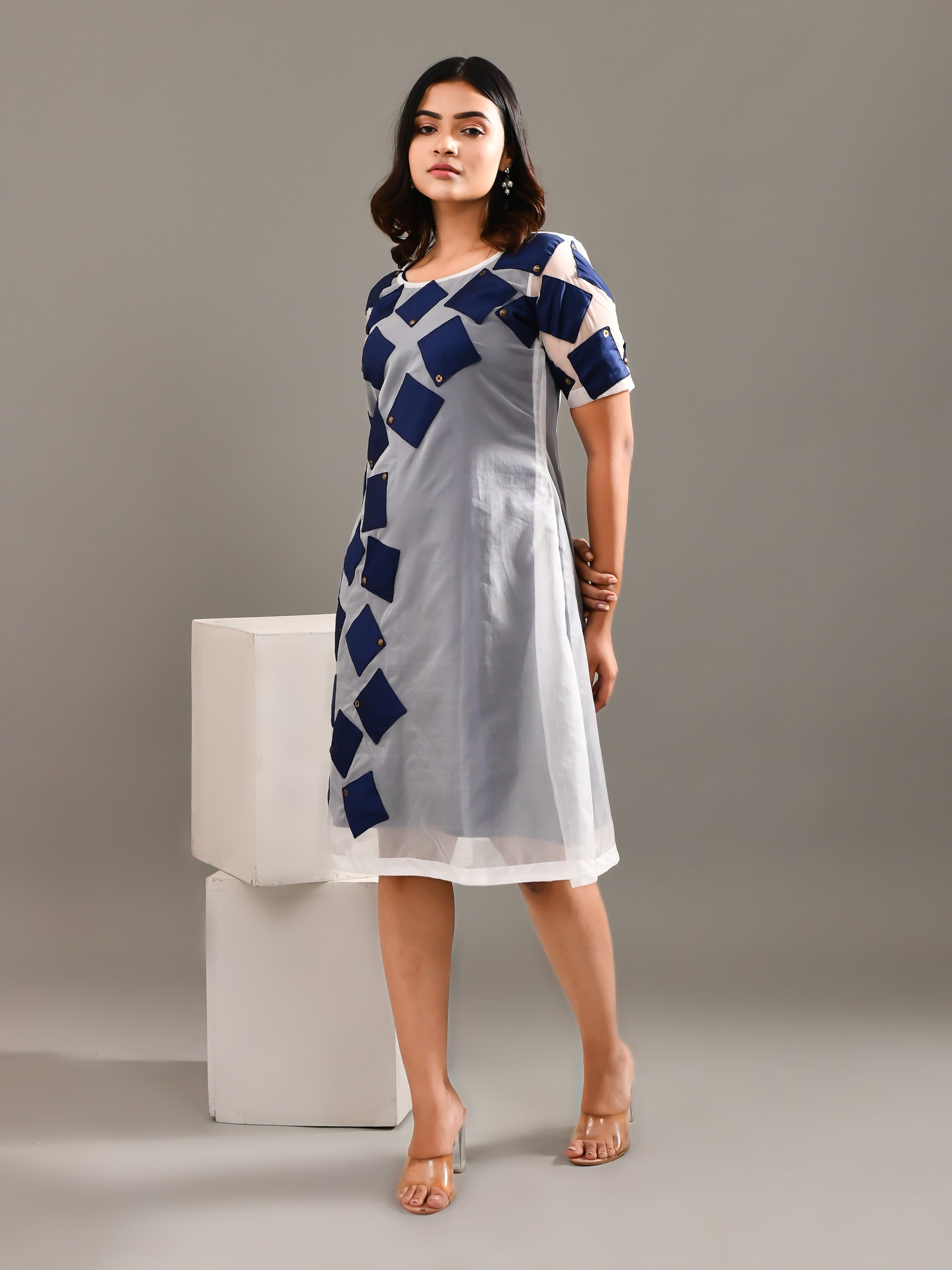 A vibrant patchwork dress that adds a fresh burst of colour to your wardrobe. The sheer layers and intricate detailing create depth while keeping the look light and effortless. Distinctive and easy to wear, it brings together comfort with a strong visual appeal.